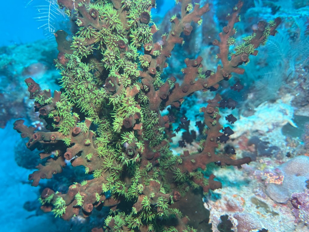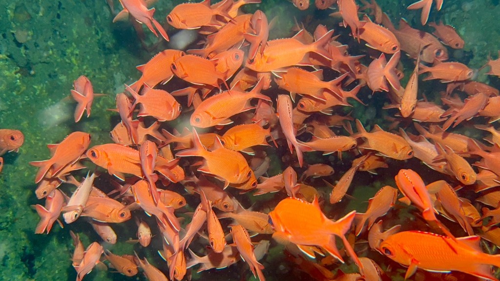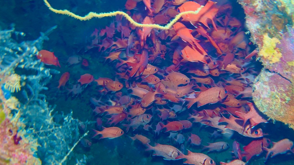 Although you can barely make out the wreck due to the visibility through the abundance of life on the wreck. Here is another video to illustrate.